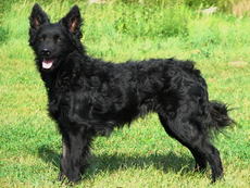 Это среднего размера собака. Всегда черного окраса (допускаются небольшие белые отметины) с полудлиной курчавой шерстью. Морда -характерного лисьего типа с короткой шерстью и прижатыми (полу прижатыми) ушами.