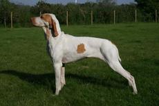 К чертам, напоминающим гончую, относятся уши, свернутые в складку, подвес на шее, овальные лапы, горбоносость. Низко посаженный хвост купирован. Шерсть короткая, тонкая, плотно прилегающая. Окрас белый с оранжевыми или каштановыми пятнами, чаще с крапом.
