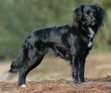 Голова среднего размера. Морда заостренная. Шерсть несколько удлиненная, очень мягкая и шелковистая. Очень хорошо развита грудная клетка. Окрас породы черный, может быть с белыми отметинами.