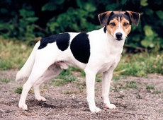 Окрас белый с пятнами разного цвета. Собака несколько растянутого формата на невысоких, крепких лапах. Голова не крупная, морда длинная, узкая. Уши висящие, плотно прилегающие к голове, треугольной формы. Примечателен хвост: он может быть различной длины, от короткого от рождения до длинного. Даже щенки из одного помета могут иметь хвостики различной длины.