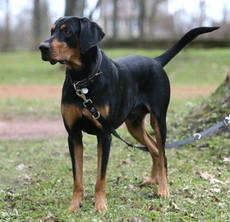 Изящная, мускулистая собака с мощным костяком и сильным корпусом. Живот умеренно подобран. Хвост довольно длинный, высоко не поднимается, обычно опущен вниз. Окрас черный, блестящий с рыжими подпалинами.